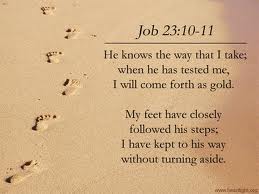 “But He knows the way that I take; When He has tested me, I shall come forth as gold. My foot has held fast to His steps; I have kept His way and not turned aside. I have not departed from the commandment of His lips; I have treasured the words of His mouth, more than my necessary food.” Job 23:10-12 (NKJV)